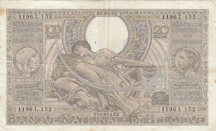 Accueil > Billets du Monde > Billets d'Europe > Belgique > Belgique 100 francs - Elisabeth et Albert - 05-04-1934 - Série L.152