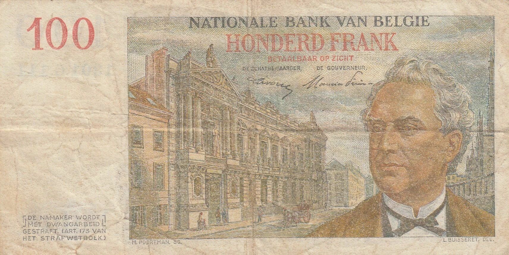 Ce billet de 100 francs constitue un artefact historique, reflétant les personnalités et les normes graphiques en vigueur en Belgique au milieu du 20e siècle.