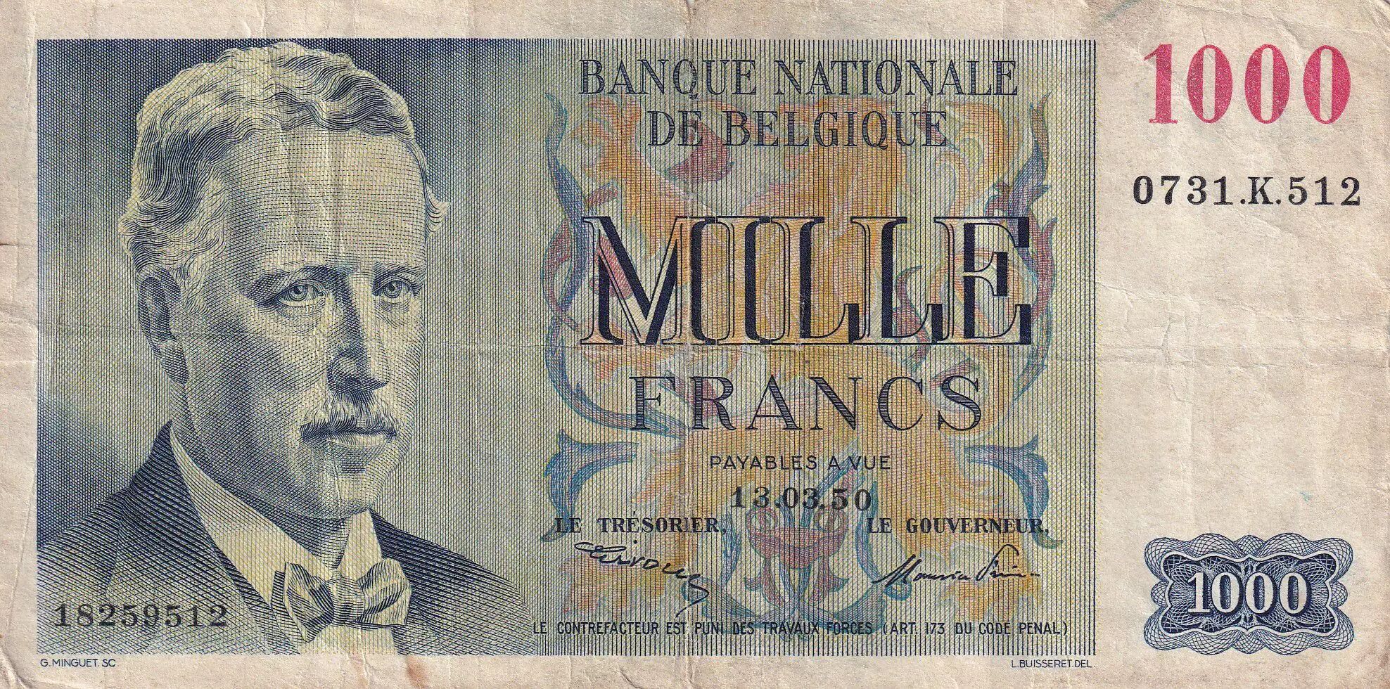 Accueil > Archivage > Belgique 1000 Francs - Albert I - 1950 - TB - P.131