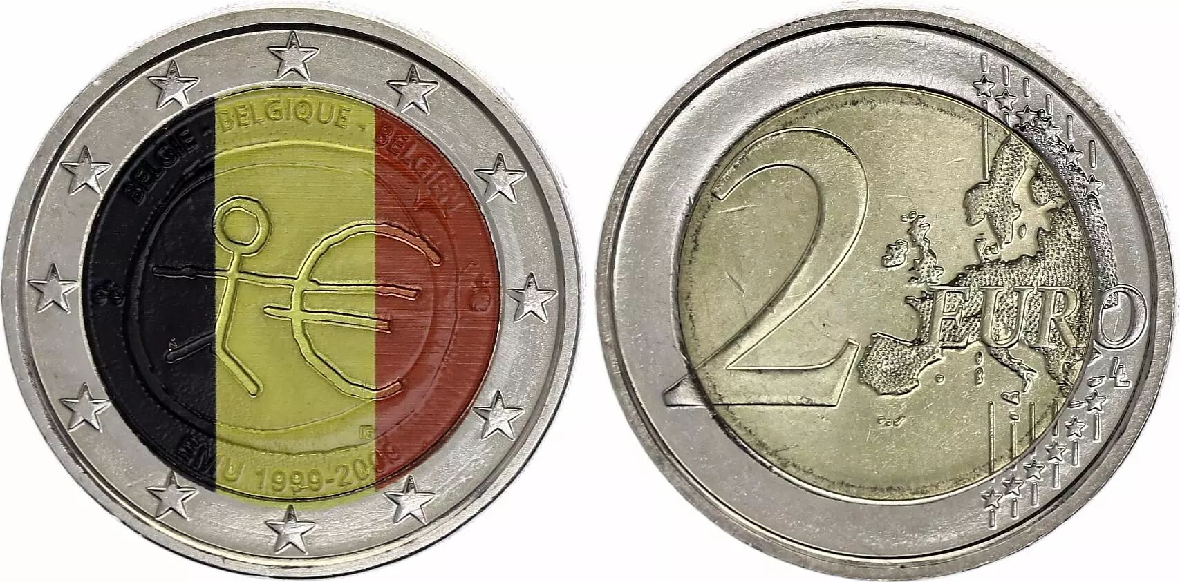 Accueil > > Belgique 2 Euros - 10 ans UEM - Colorisée - 2009 - Bimétallique