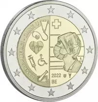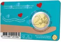 En reconnaissance des efforts exceptionnels déployés pendant la pandémie de covid la Monnaie Royale de Belgique émet une pièce unique de 2 euros. En Belgique les chiffres de début avril 2022 indiquent que depuis mars 2020 il y a eu environ 3 9 millions d'infections coronaires dont environ 116 700 hospitalisations et +/- 30 800 décès. Les employés du secteur des soins de santé revêtent une importance considérable en cette époque compliquée. Ils travaillent dur chaque jour pour fournir de bons soins même pendant les périodes de pointe et sont donc un soutien incroyable pour tous. La version BU en coincard est un véritable coup de c?ur pour tous les soignants. L'emballage en témoigne avec une représentation graphique de mains et de c?urs attentionnés.