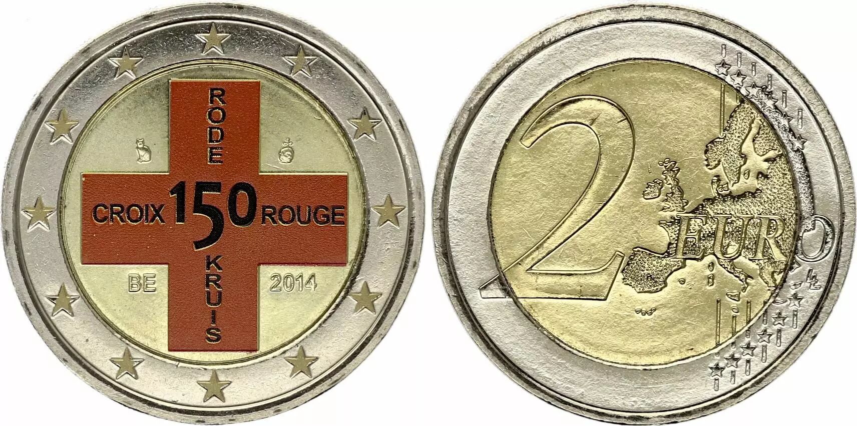 Accueil > > Belgique 2 Euros - Croix rouge - Colorisée - 2014