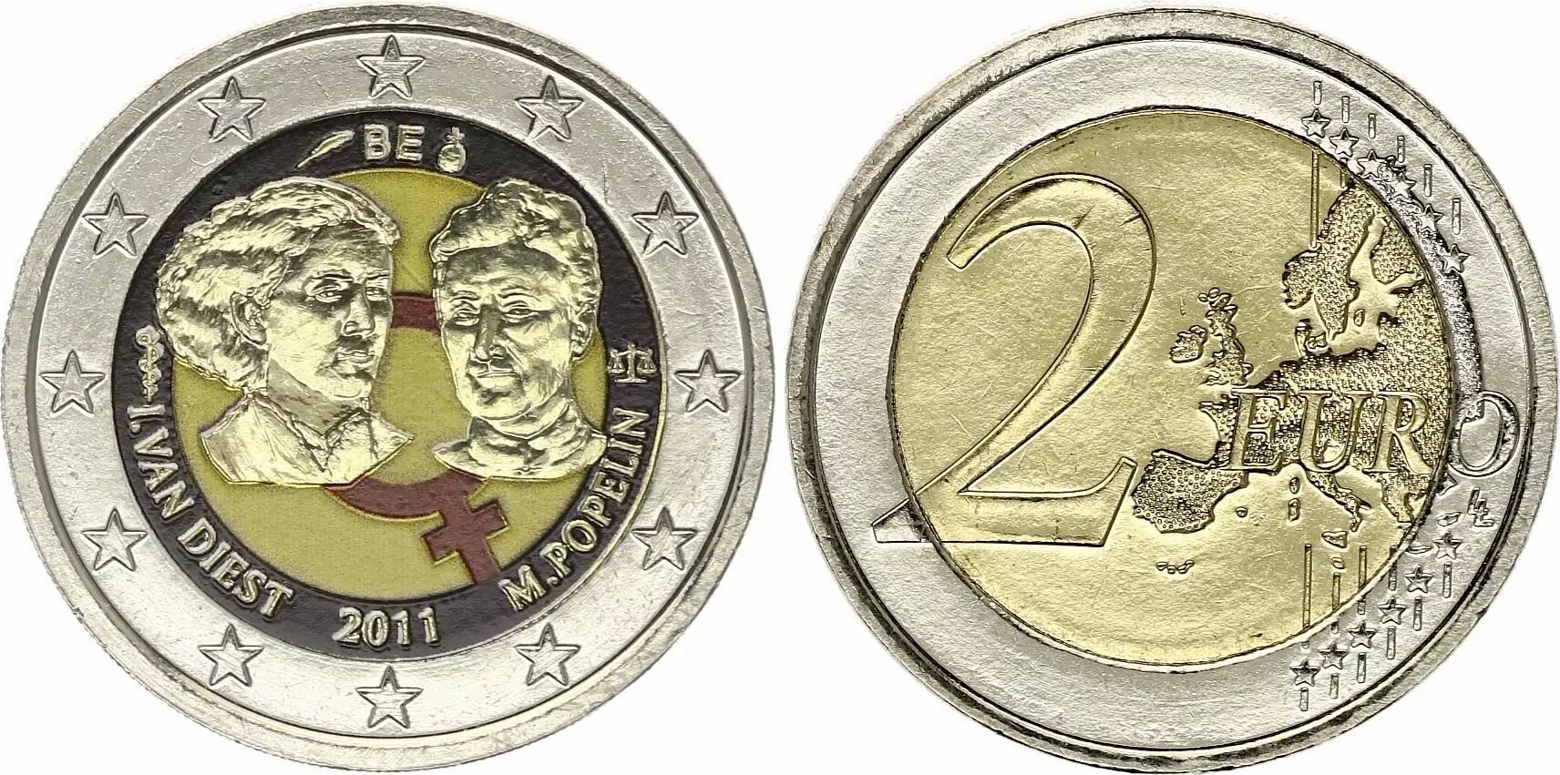 Pièce Belgique 2 Euros - Journée des droits de la femme - Colorisée - 2011