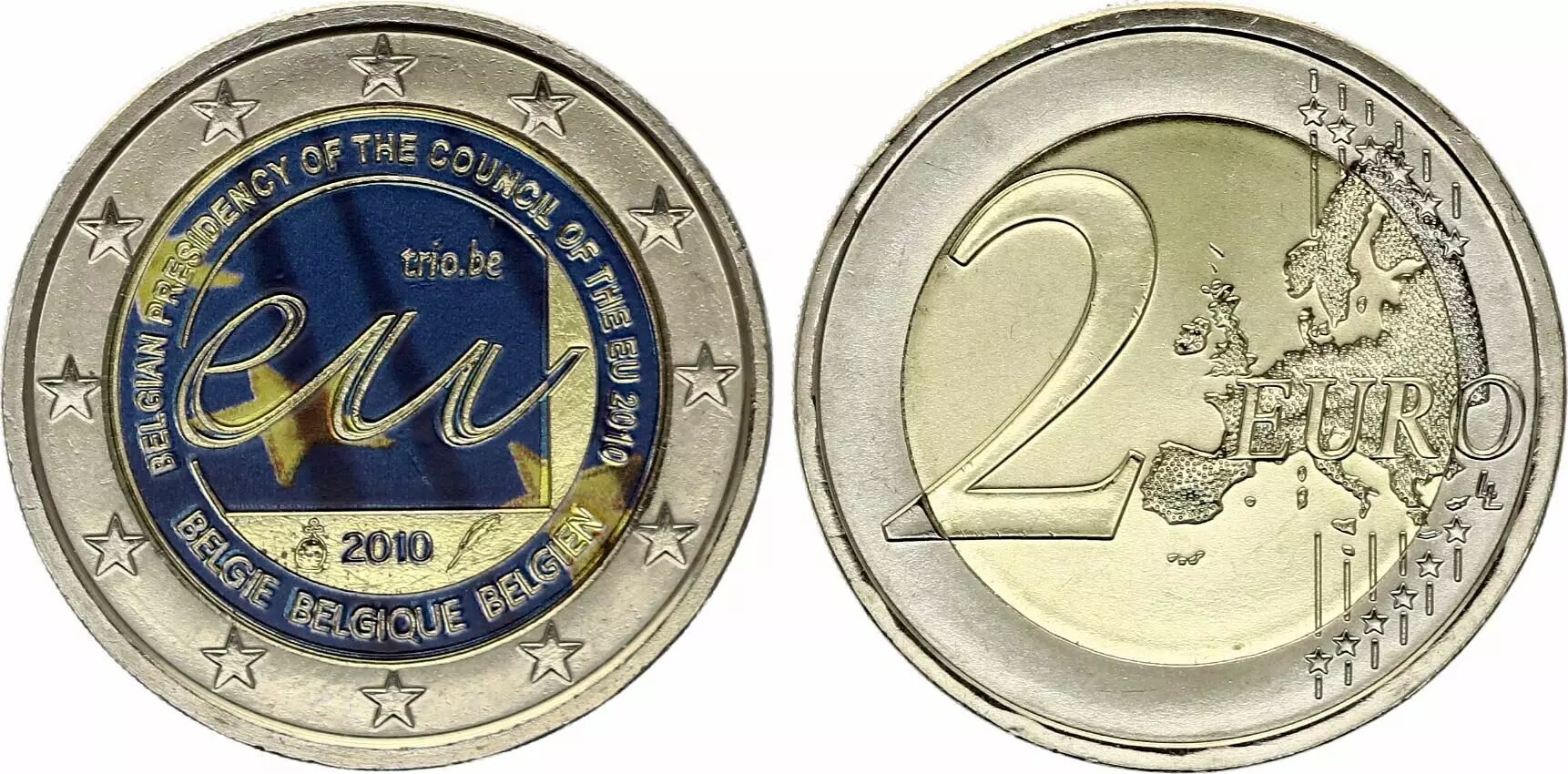 Pièce Belgique 2 Euros - Présidence de l'UE - Colorisée - 2010