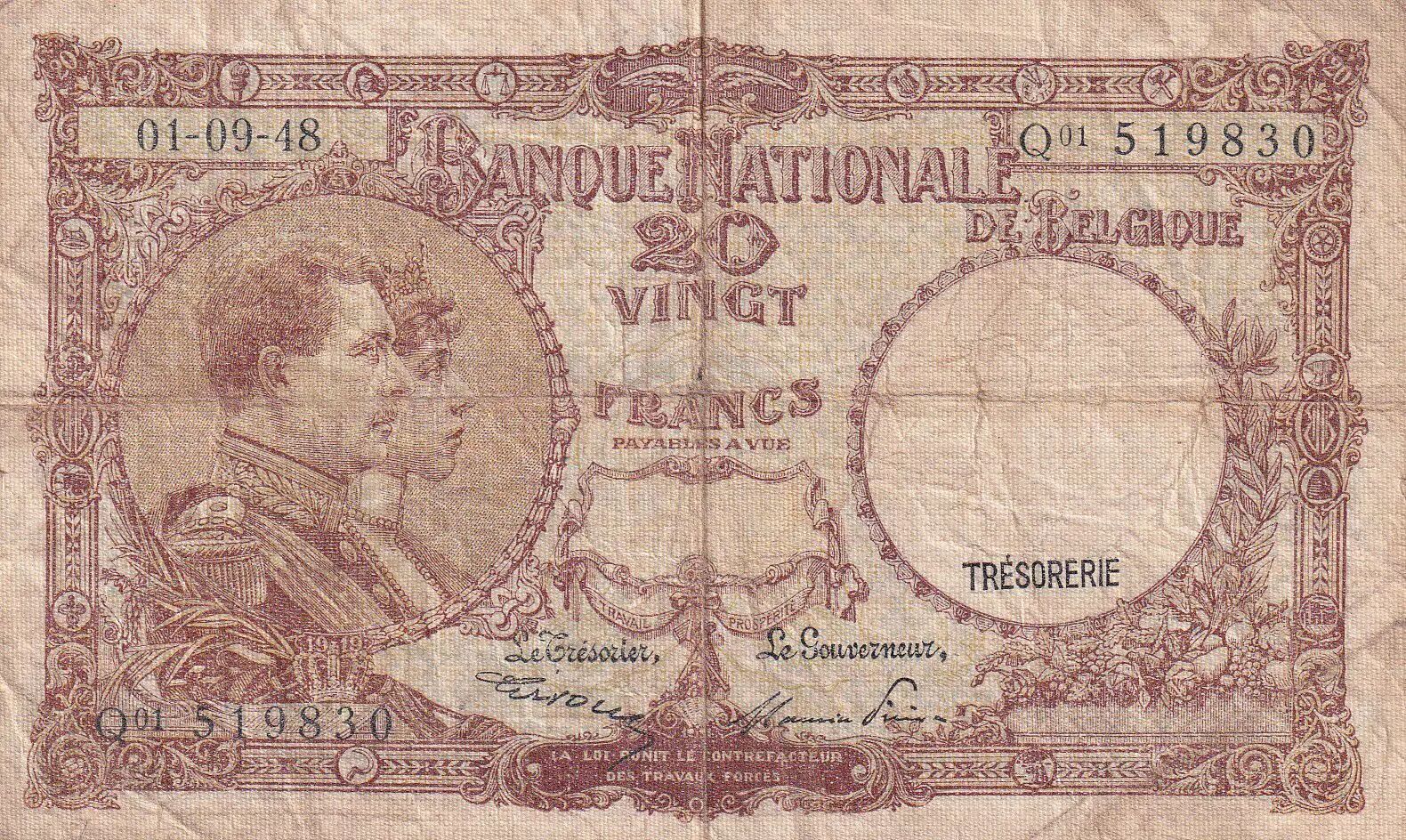 Accueil > Archivage > Belgique 20 Francs - Couple royal - 1948 - Lettre Q - P.116