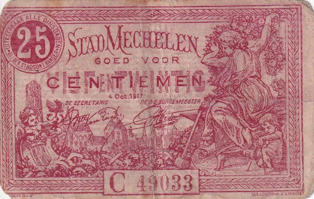 Accueil > Archivage > Belgique 25 Centimes - Ville de Malines - 1917 - Série C -