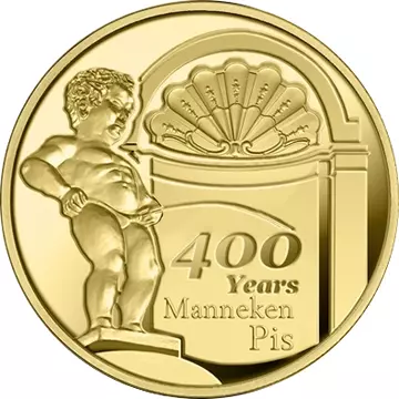 Des USA au Japon d'Australie au Groenland ... La terre entière connait le nom de la plus célèbre statues de Bruxelles : le Manneken Pis. Fontaine d'à peine 60 cm de haut qui représente un petit garçon espiègle en train d'uriner ce monument emblématique est situé Rue de l'Étuve tout près de la Grand-Place de la capitale belge. Il attire chaque année des millions de touristes et fait bien sûr l'objet d'innombrables photos de vacances. Le Manneken Pis est l'?uvre de Jérôme Duquesnoy sculpteur à la cour des archiducs Albert et Isabelle. La statue de bronze symbolise sans doute les nombreuses tanneries d'alors où l'urine de jeunes enfants - à forte teneur en ammoniaque - était utilisée pour rendre le cuir plus souple. Mais le Manneken Pis possède aussi une gigantesque garde-robe de plus de 900 costumes. Le Manneken Pis a donc 400 ans en 2019 et la Monnaie Royale de Belgique le célèbre à sa façon !