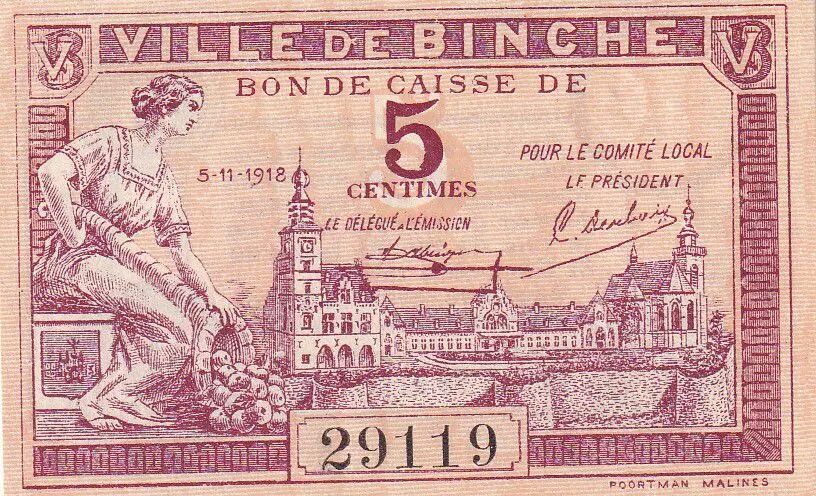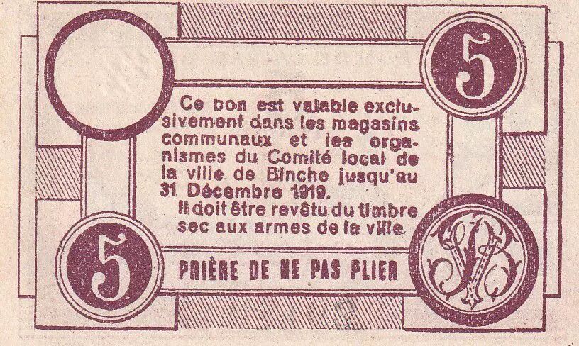 Accueil > Archivage > Belgique 5 Centimes - Ville de Binche - Bon de Caisse - 1918