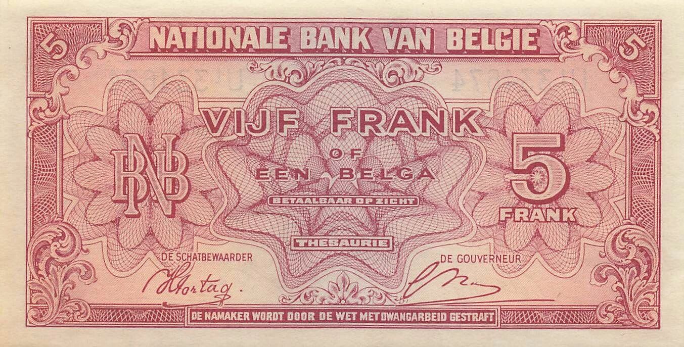 Billet Belgique 5 Francs - 01-02-1943 - P.121