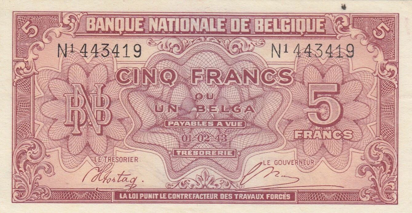 Ce billet de 5 francs de 1943 est un témoignage de l'histoire monétaire de la Belgique pendant la Seconde Guerre mondiale. Son état de conservation et sa rareté peuvent influencer sa valeur pour les collectionneurs.