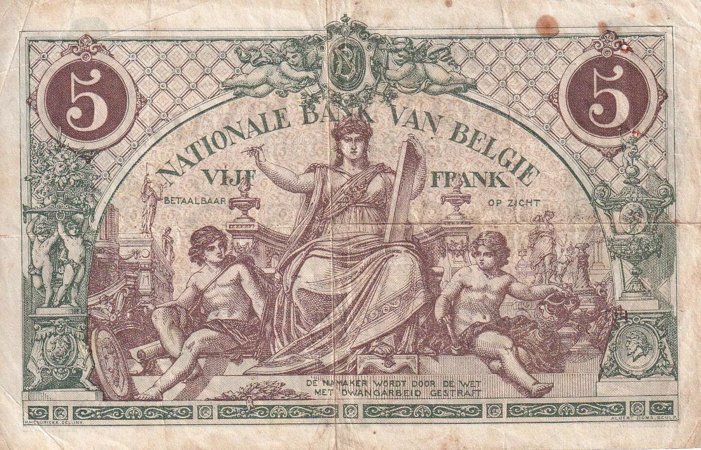 Accueil > Archivage > Belgique 5 Francs - Allégorie - 01-07-1914 - Lettre D - P.75