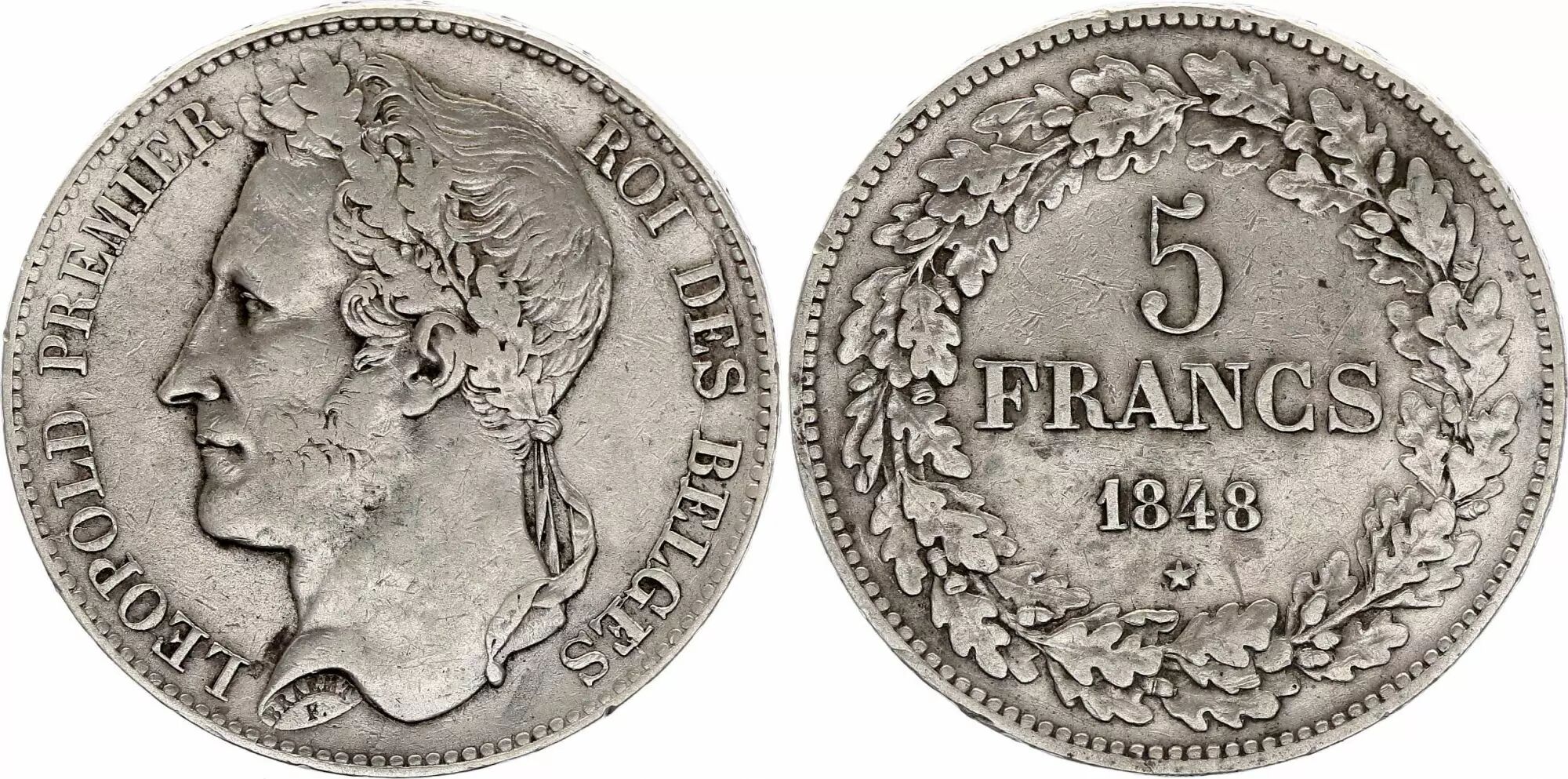 Pièce Belgique 5 Francs, Leopold I - 1848