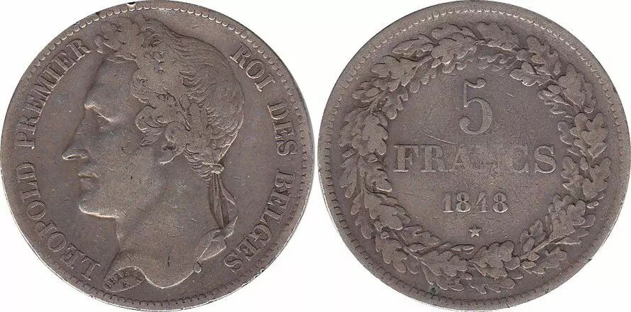 Accueil > > Belgique 5 Francs Leopold I - 1848