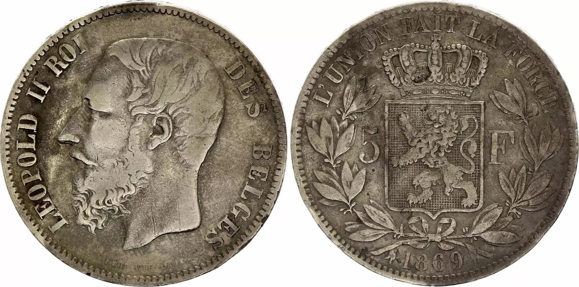 Accueil > > Belgique 5 Francs - Léopold II - Armoiries - 1869