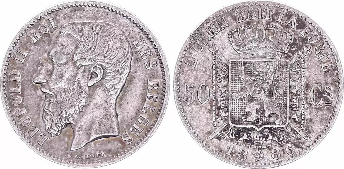 Accueil > > Belgique 50 Centimes, Léopold II - Armories- 1886