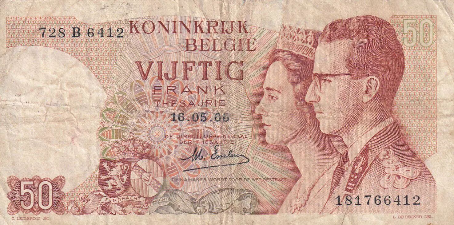 Billet Belgique 50 Francs - Baudoin Ier & Reine Fabiola - 1966 - Séries variées - TB à TTB - P.139