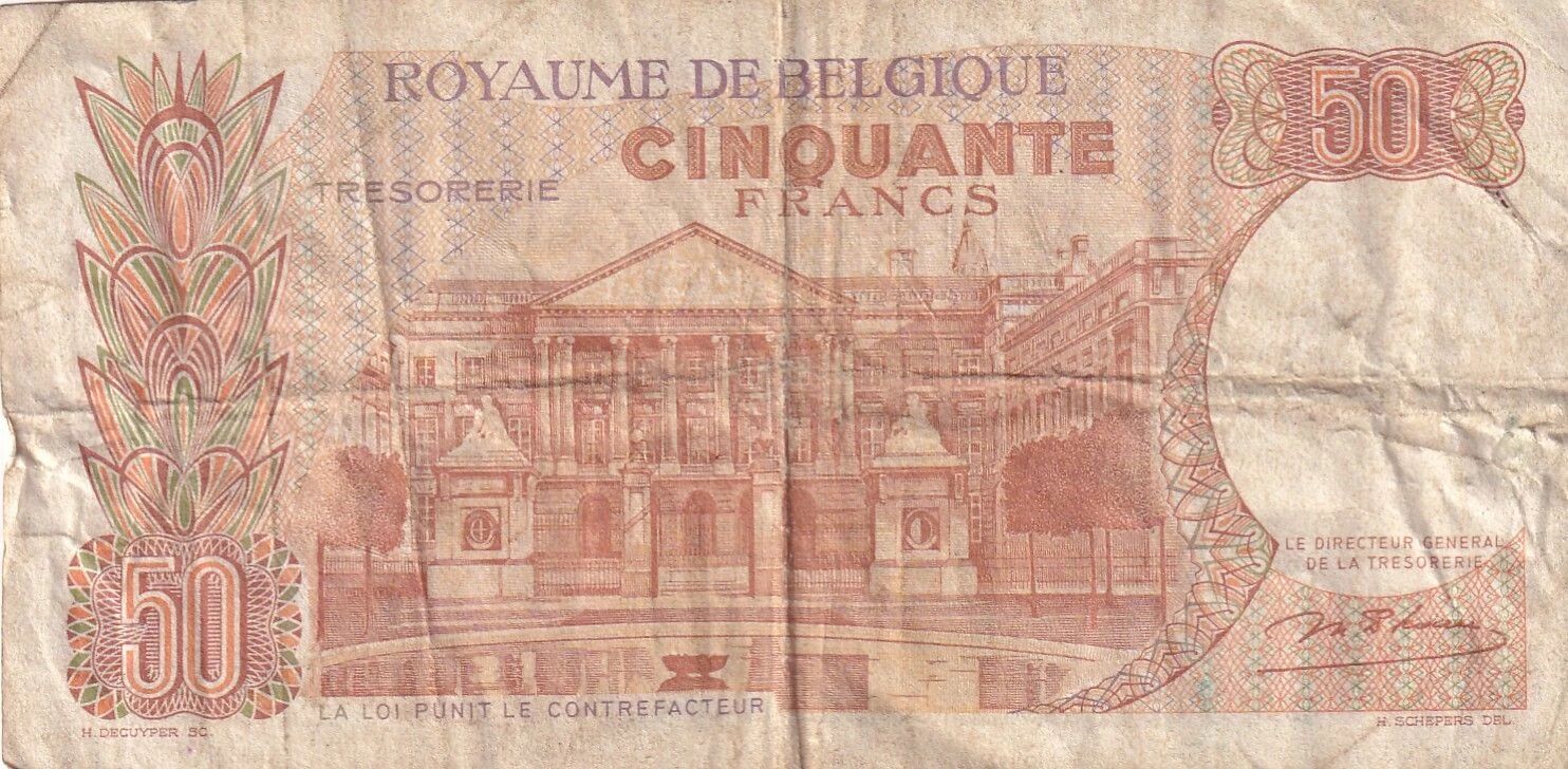 Ce billet de banque de Belgique, d'une valeur nominale de 50 francs, a été émis en 1966. Il appartient à la Série V.