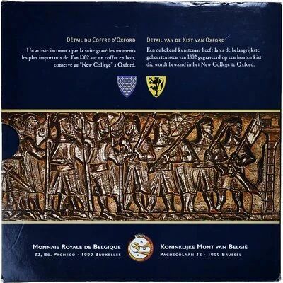 Chaque pièce présente les caractéristiques standards des euros belges en circulation. Les faces nationales arborent le portrait du Roi Albert II, entouré des douze étoiles du drapeau européen, symbolisant l'unité et l'harmonie entre les nations membres de l'Union Européenne. Le millésime 2002 figure également sur ces faces, marquant l'année de frappe des pièces incluses dans le coffret.
