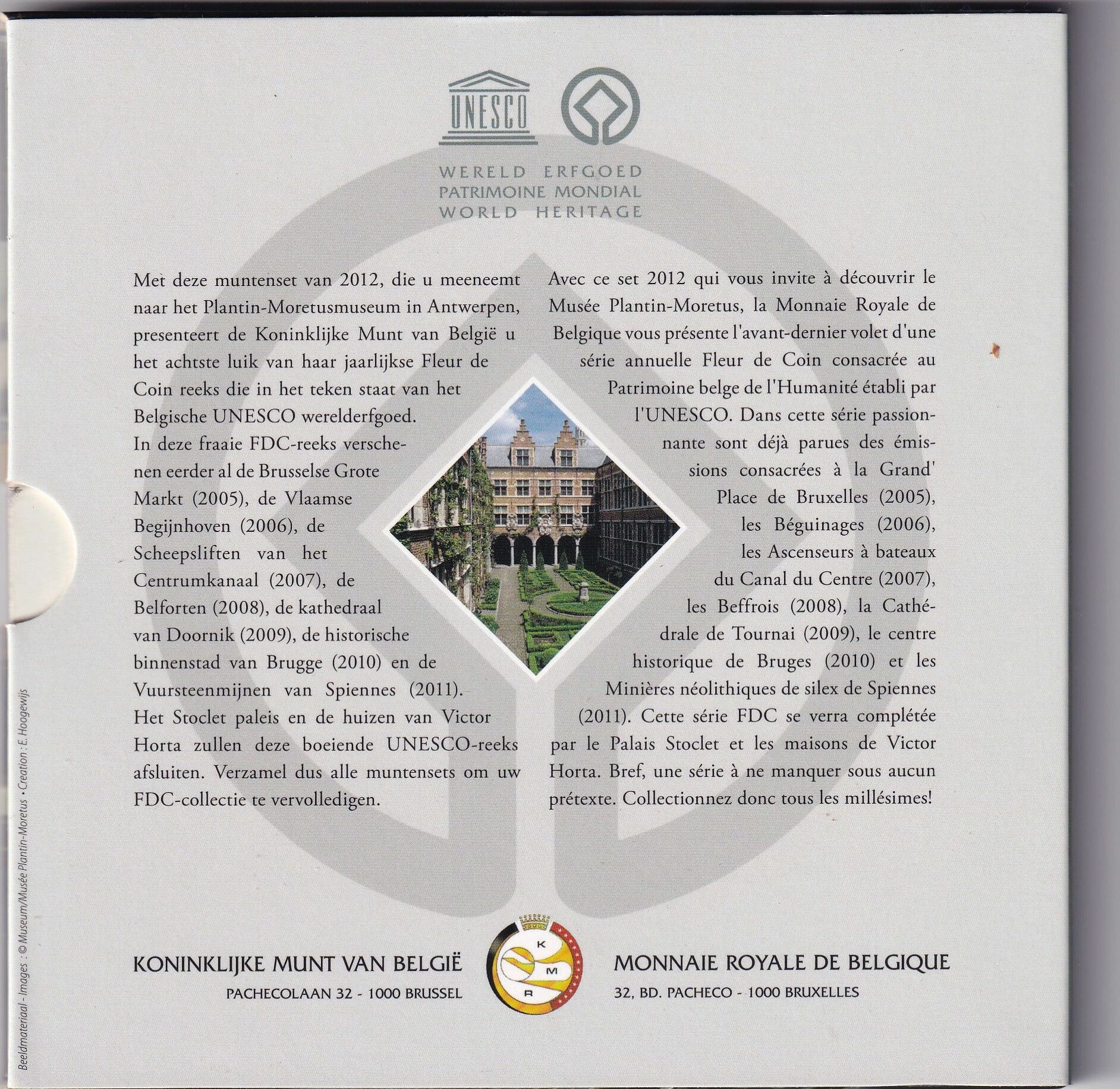 Le coffret numismatique Belle Épreuve (BU) émis par la Belgique en 2012 est dédié au Centre Historique de Bruges. Il contient une série complète des pièces en euros belges de l'année 2012, allant de 1 centime à 2 euros.