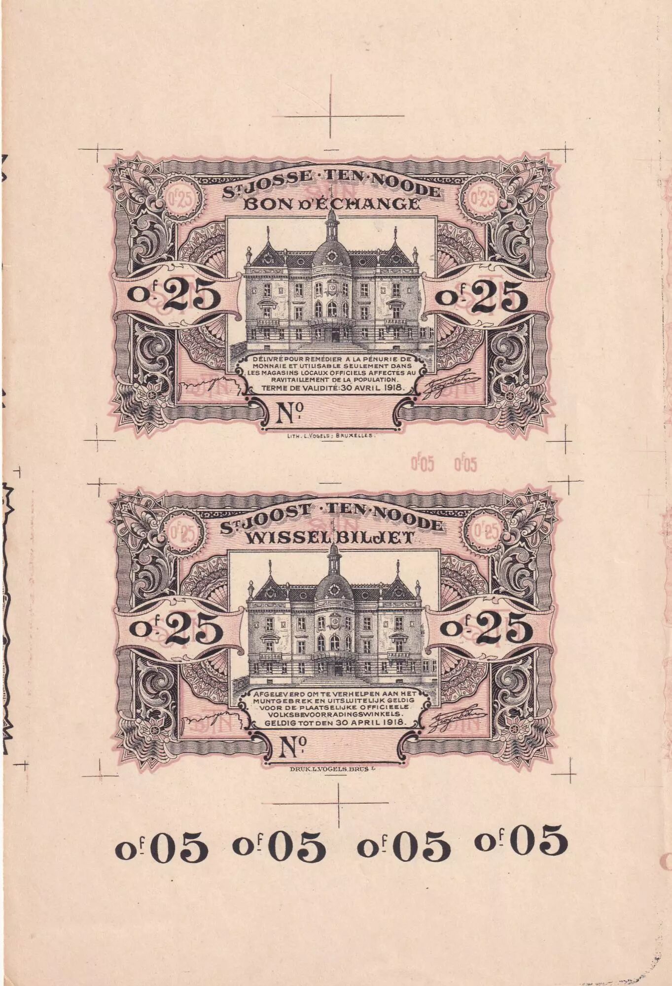 Billet Belgique Planche non découpée - 25 Centimes - Billet de nécessité de St Josse-Ten-Noode - Epreuve recto