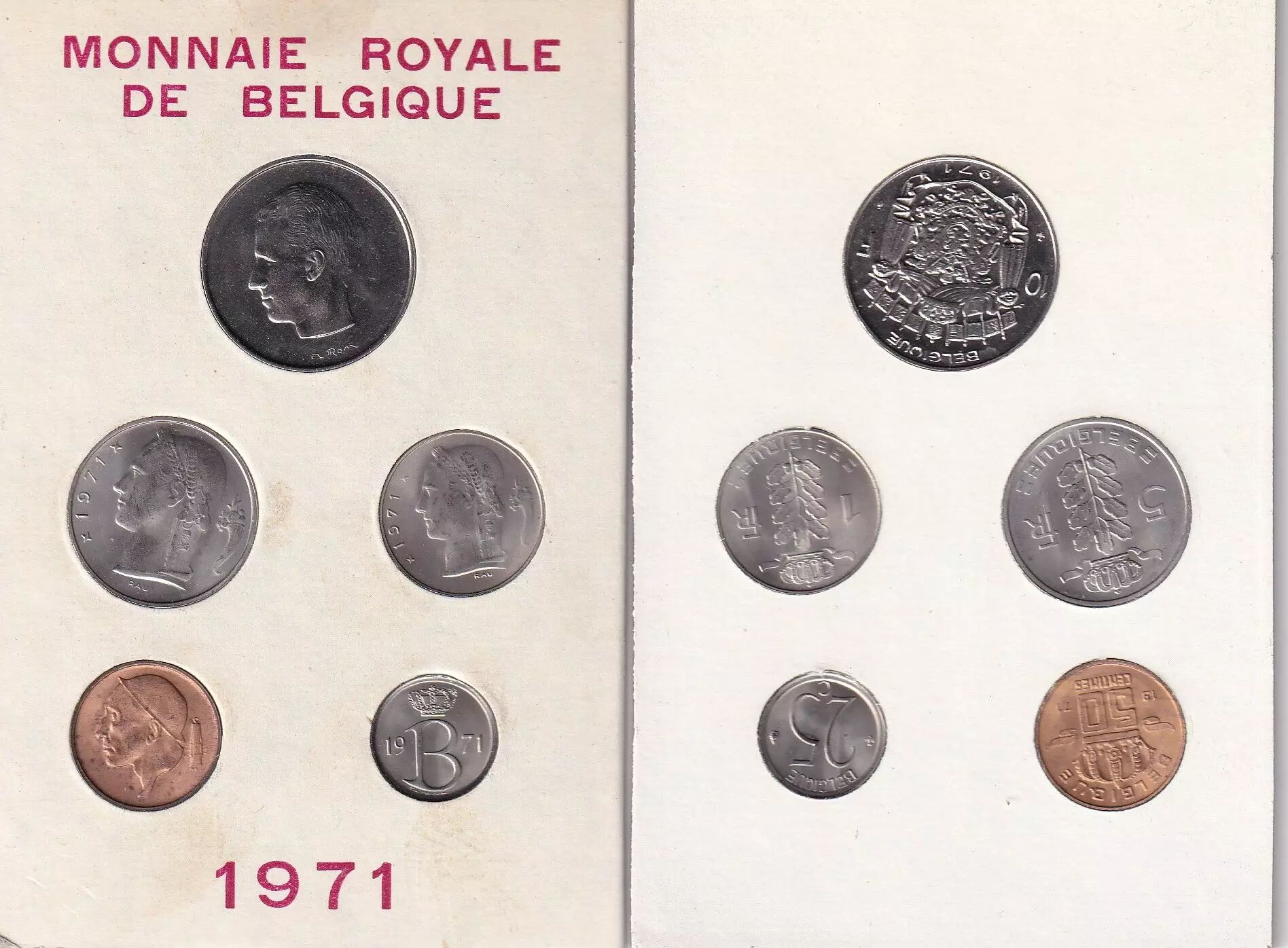 Pièce Belgique Série 5 pièces 1971 - UNC - Version française