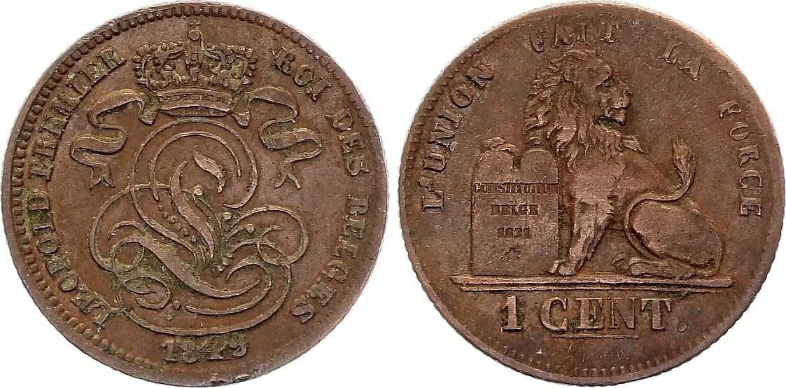 Home > World Coins > European Currencies > Belgium > Belgium 1 Centime Léopold I - Lion - 1849