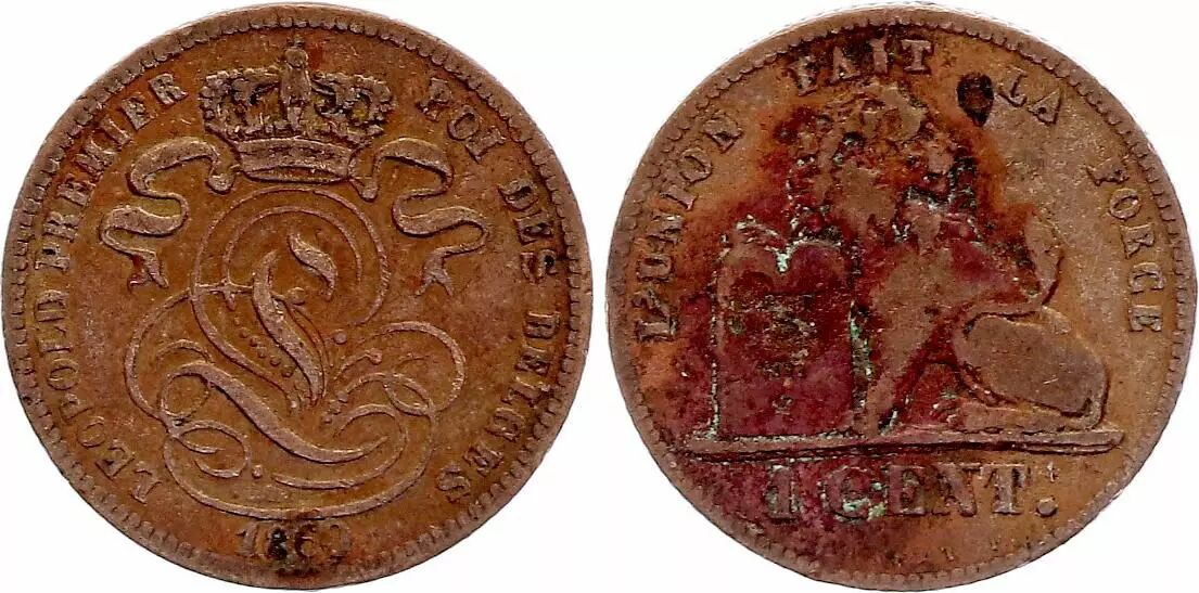 Home > World Coins > European Currencies > Belgium > Belgium 1 Centime Léopold I - Lion - 1860