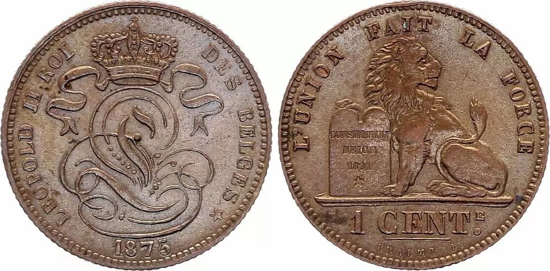 Home > World Coins > European Currencies > Belgium > Belgium 1 Centime Léopold II - Lion - 1875