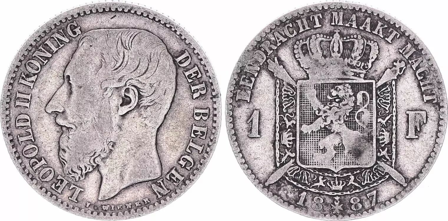 Home > > Belgium 1 Franc, Léopold II - Armories- 1887
