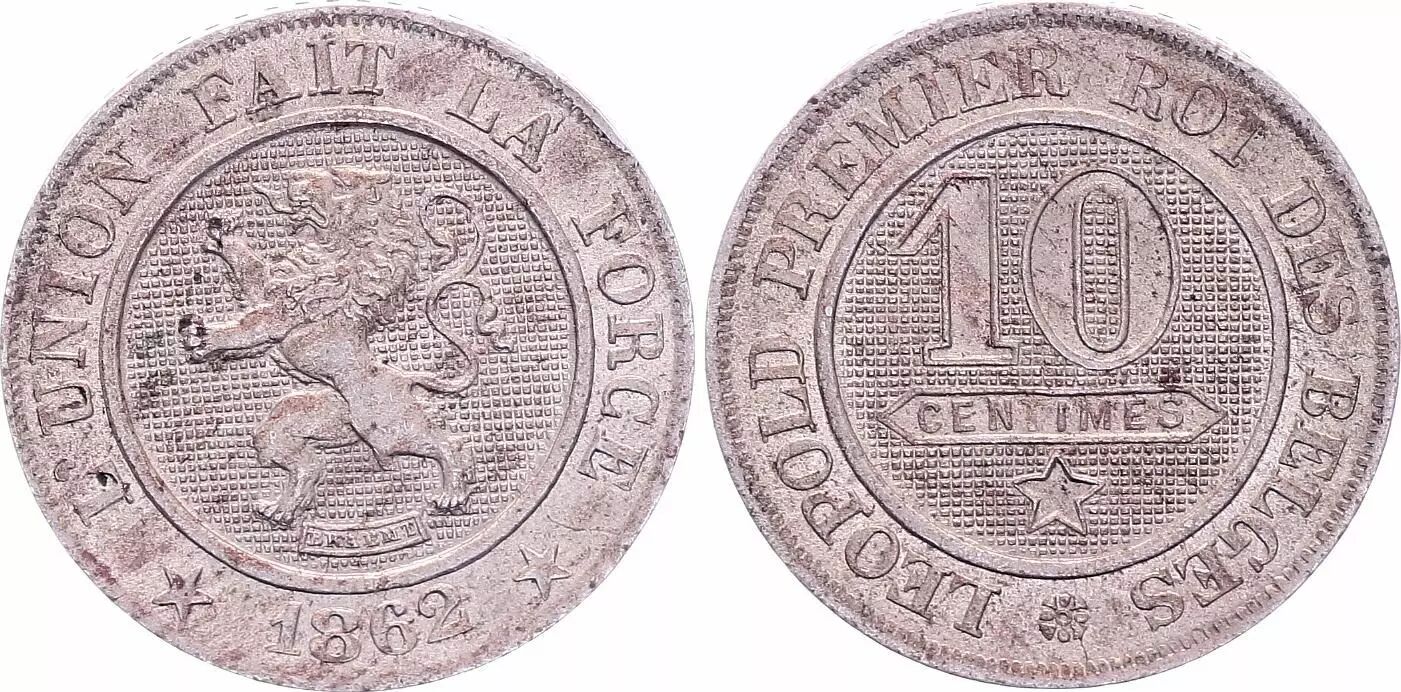 Coin Belgium 10 Centimes, Léopold I - Lion - 1862