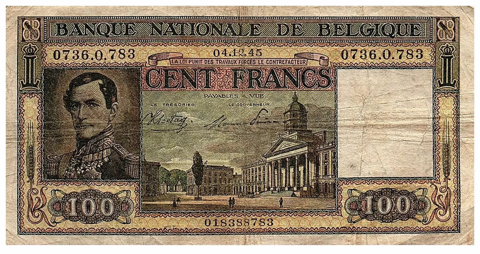 Home > > Belgium 100 Francs - 04-12-1945 - Leopold Ist, Justice Palace
