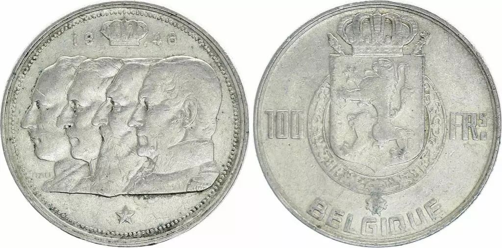 Home > World Coins > European Currencies > Belgium > Belgium 100 Francs - 4 King - 1948 - Silver - VF