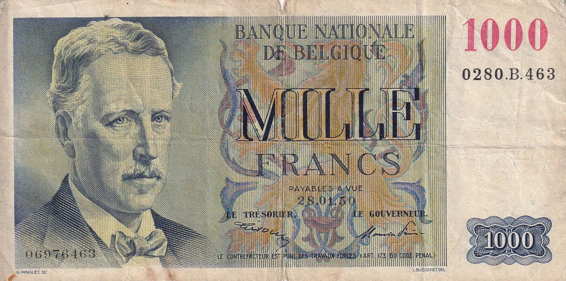 Home > > Belgium 1000 Francs - Albert I - 1950 - F - P.131