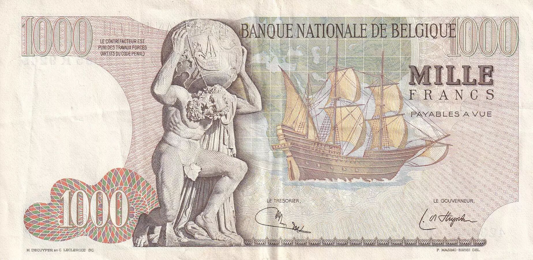 Home > > Belgium 1000 Francs Gerard Kremer - 06-08-1975 - VF - P.136b