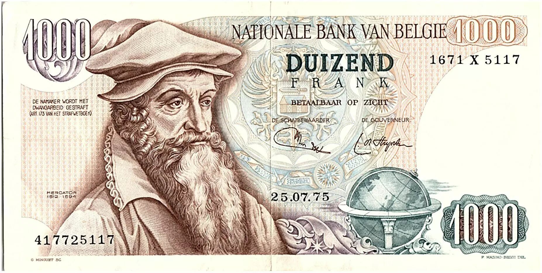 Home > > Belgium 1000 Francs Gerard Kremer- 1975 - VF - P.136