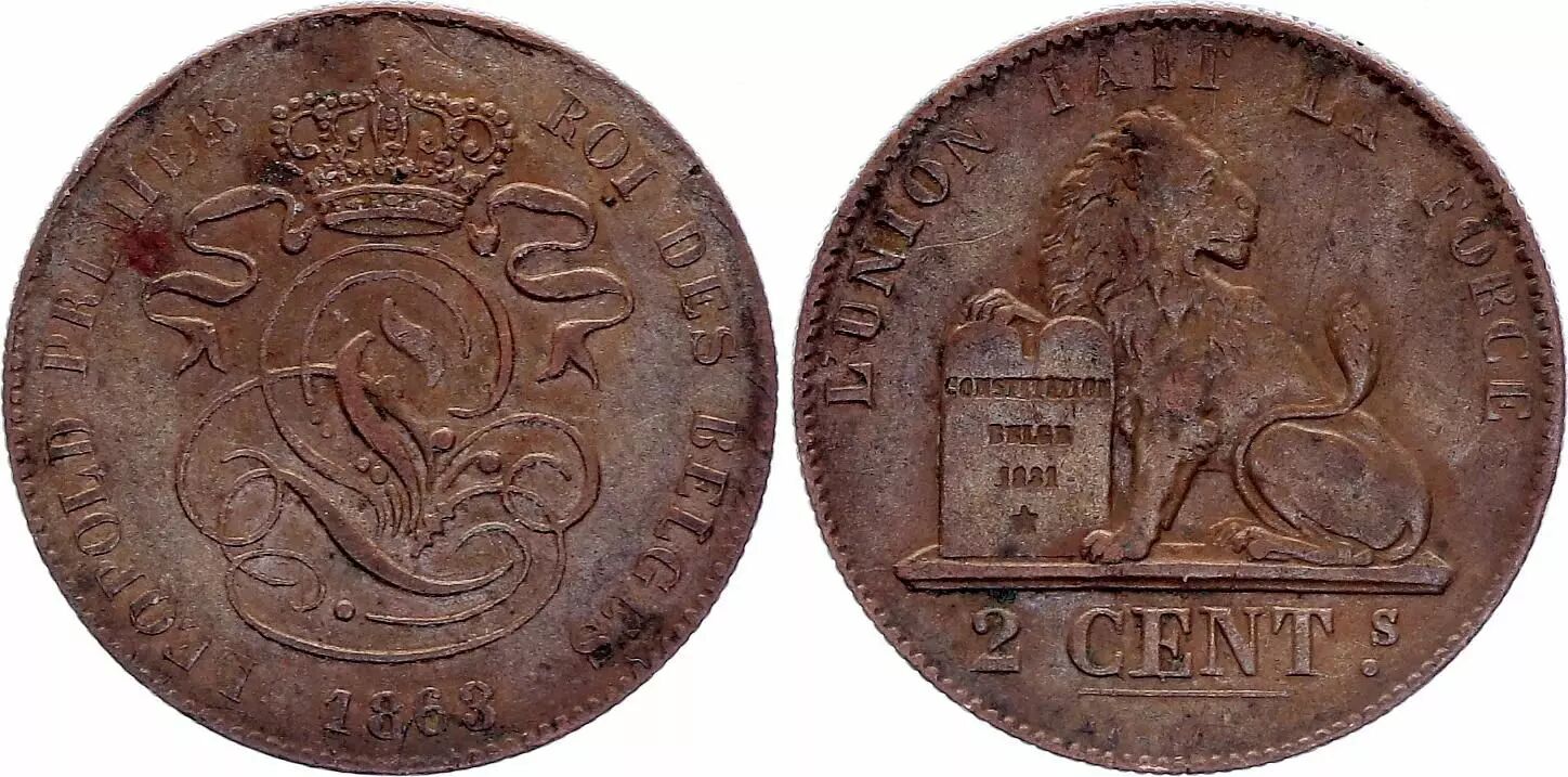 Home > > Belgium 2 Centimes Léopold I - Lion - 1863