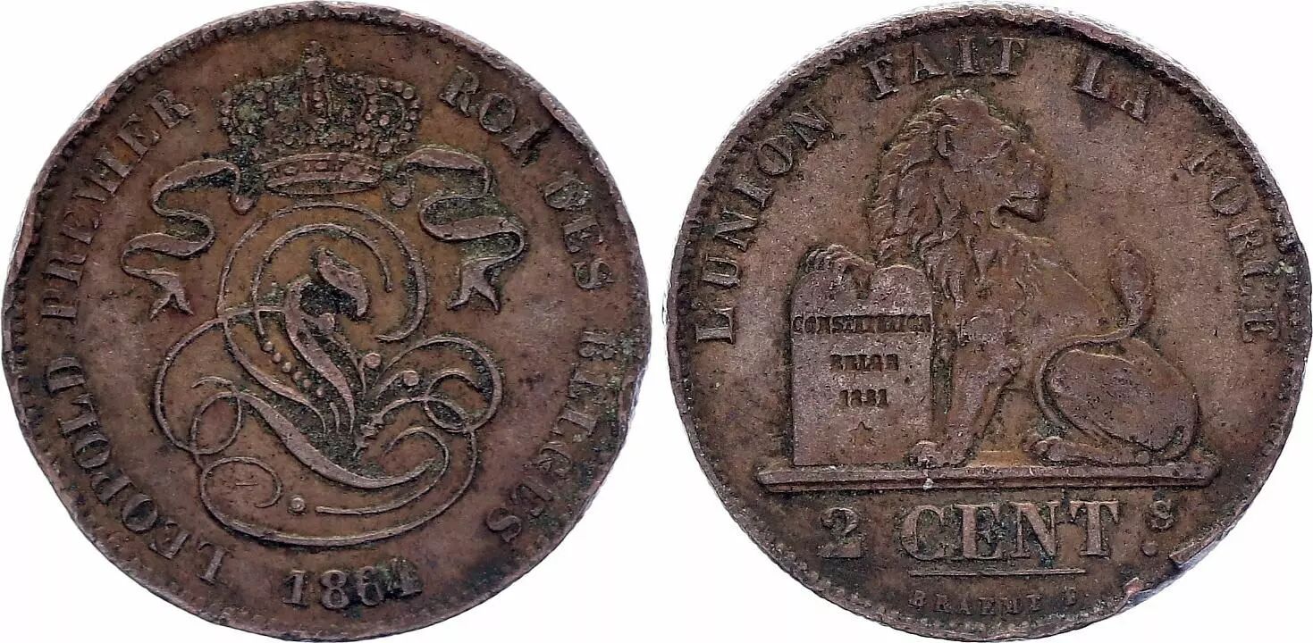 Coin Belgium 2 Centimes Léopold I - Lion - 1864/1