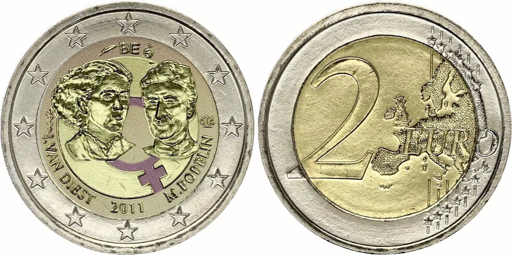 Coin Belgium 2 Euros - International Women's day - Colorised - 2012