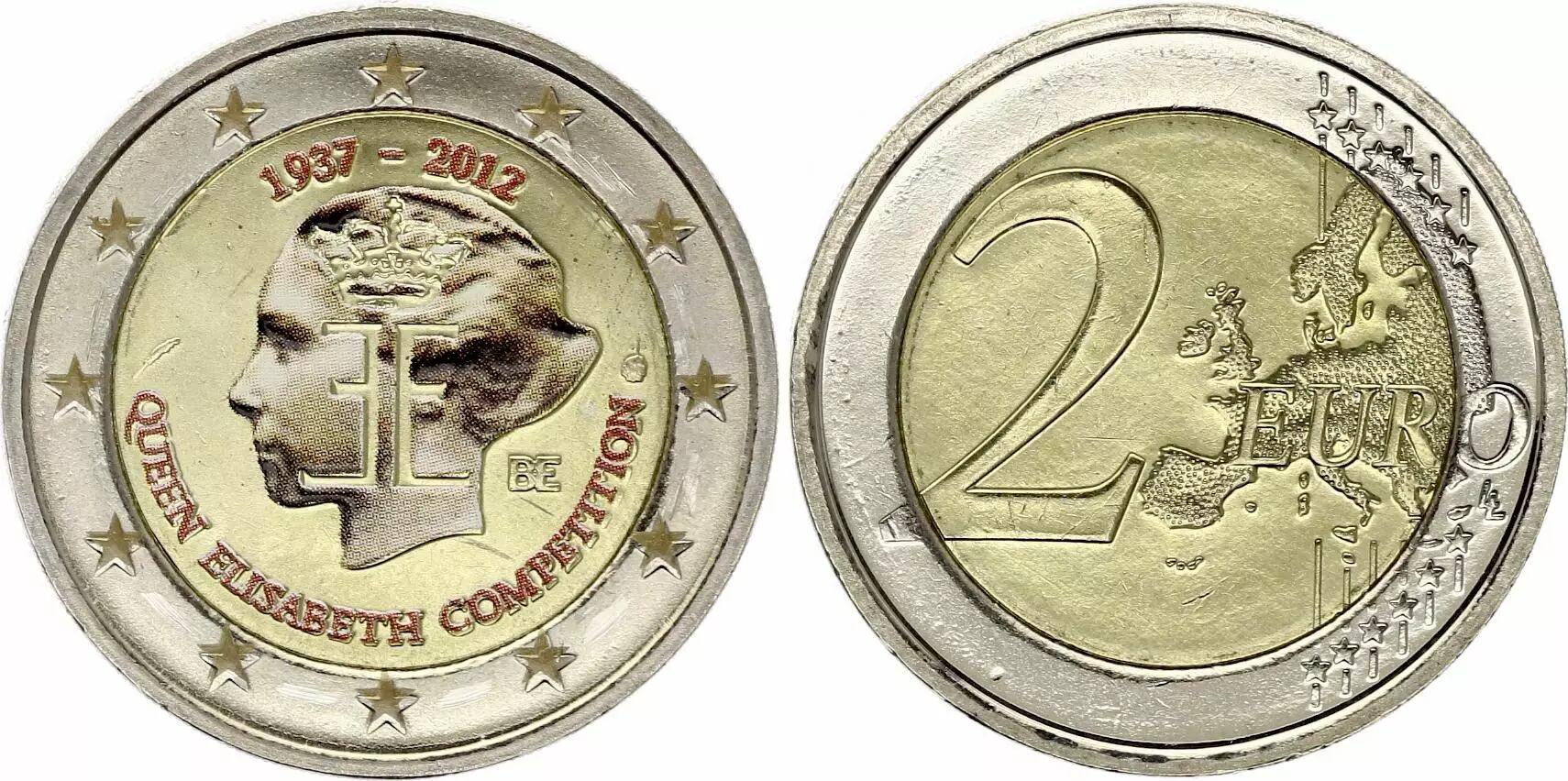 Coin Belgium 2 Euros - Queen Elisabeth Competition - Colorised - 2012