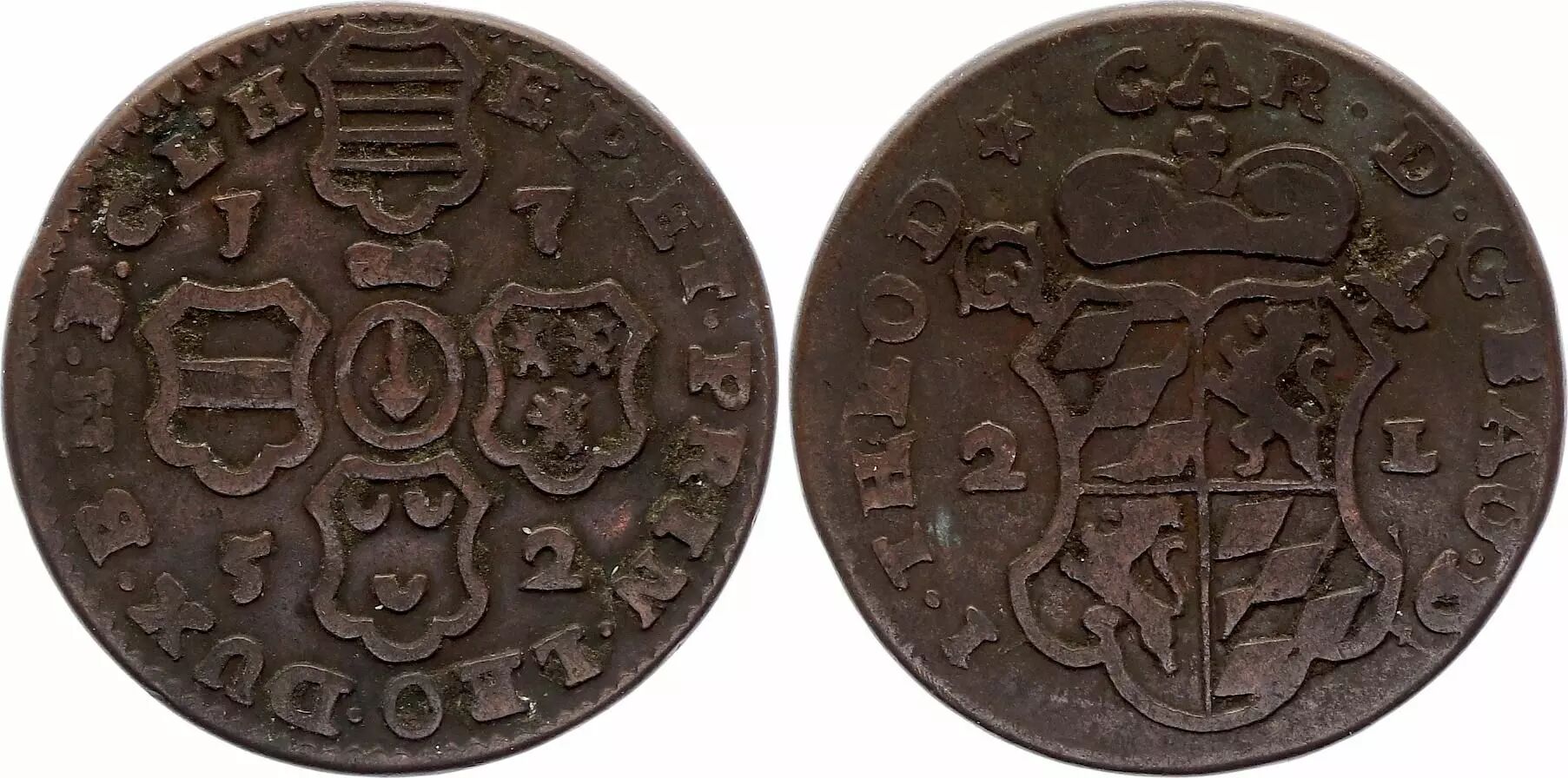 Home > > Belgium 2 liards, Jean Théodore de Bavière - Province de Liège - 1752