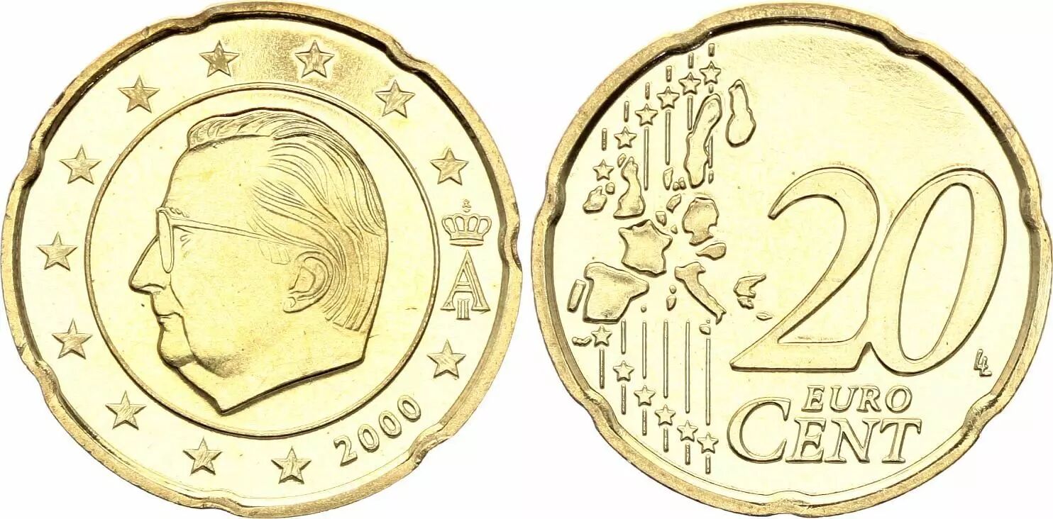 This coin is a subdivision of the euro, specifically a 20-cent coin. It was issued by Belgium and put into circulation in 2001. The coin is struck in Nordic gold, a copper-aluminum-zinc alloy, which gives it a distinctive golden-yellow color. It weighs 5.74 grams and its diameter measures 22.25 millimeters.