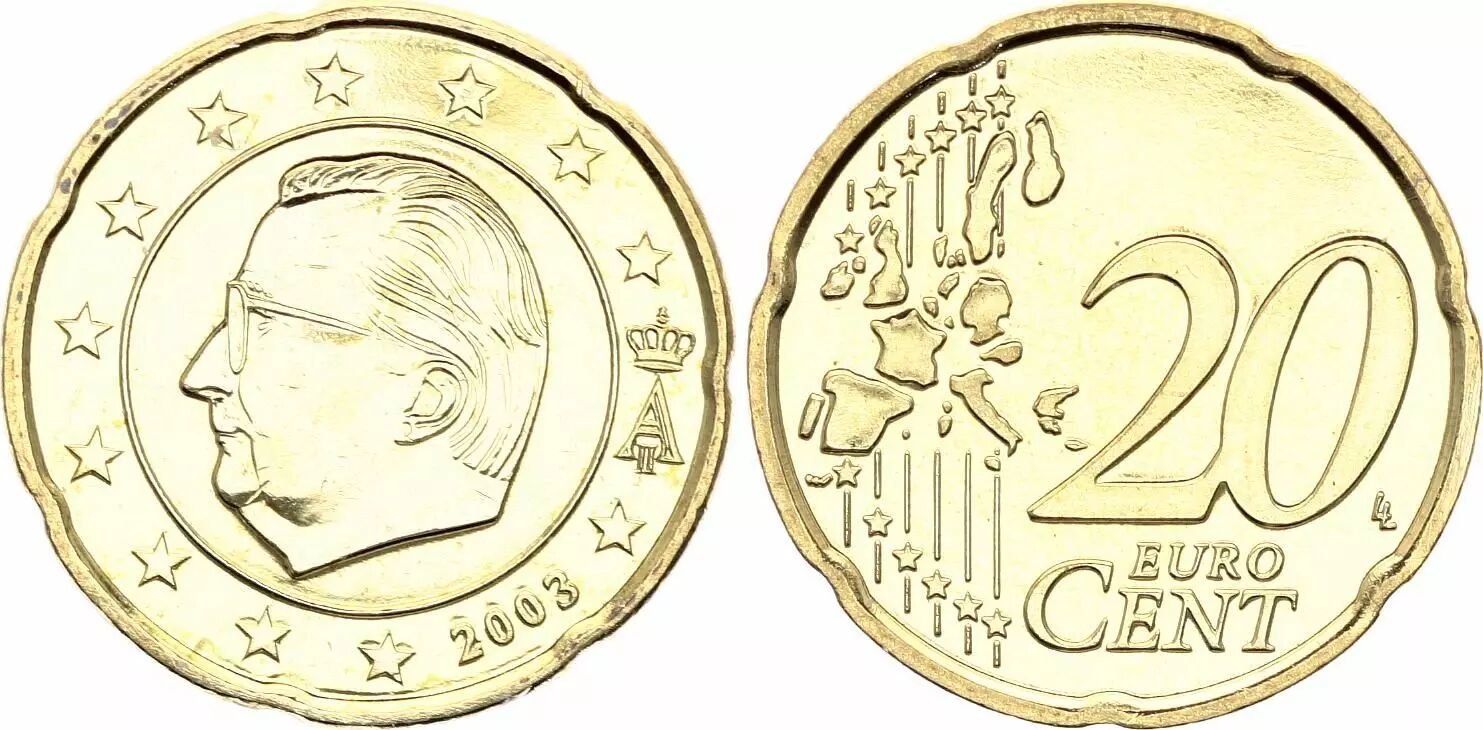 The year of issue, 2003, is on the obverse of the coin, to the right of the portrait of King Albert II. The edge of the coin is smooth with seven indentations, contributing to its tactile identification for the visually impaired.