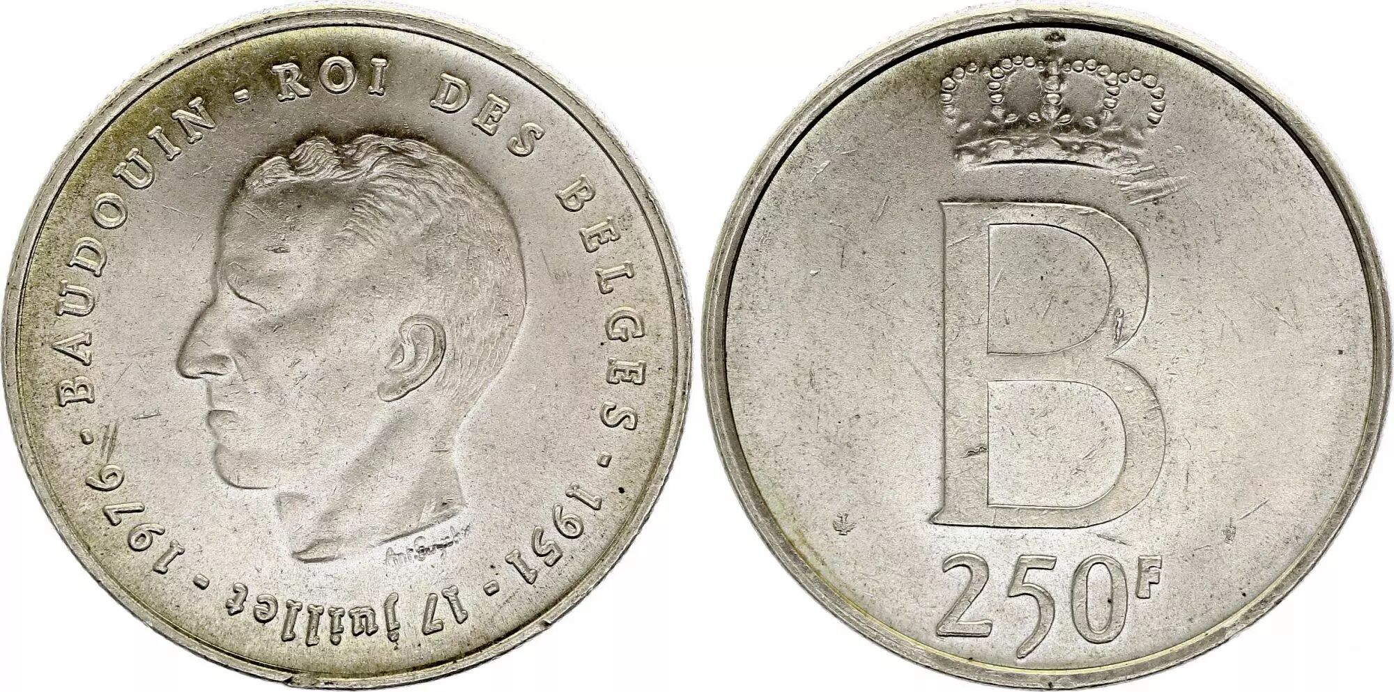 Coin Belgium 250 Francs, Roi Baudouin - 1976