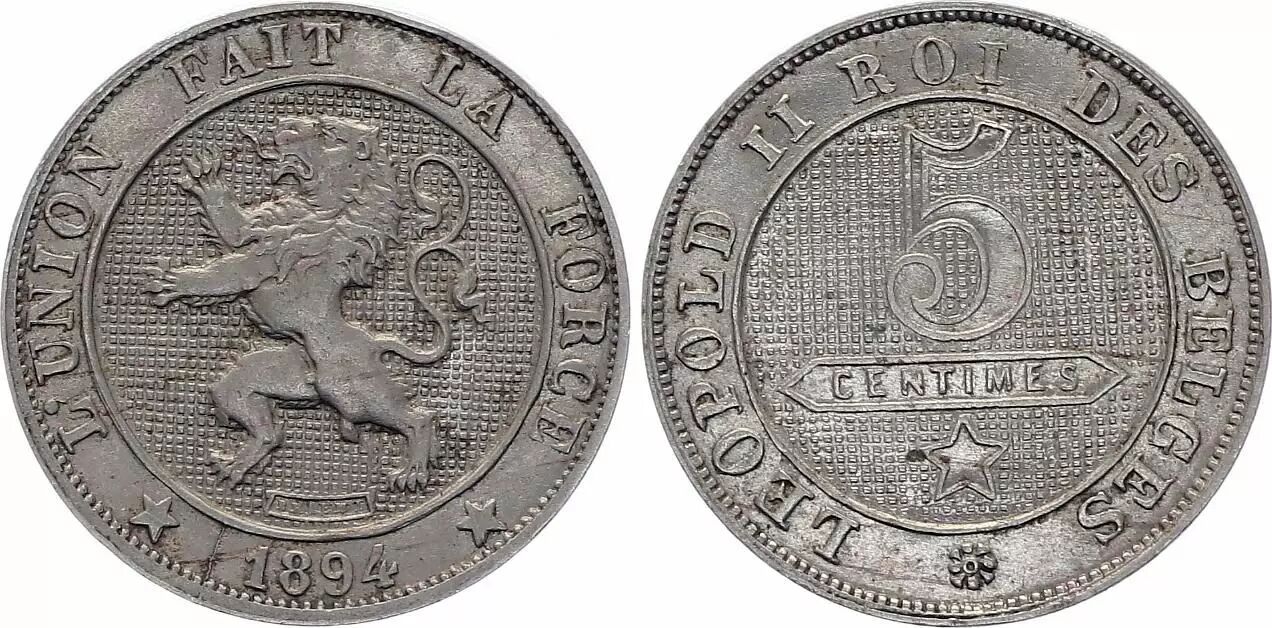 Home > > Belgium 5 Centimes, Léopold II - Lion - 1894
