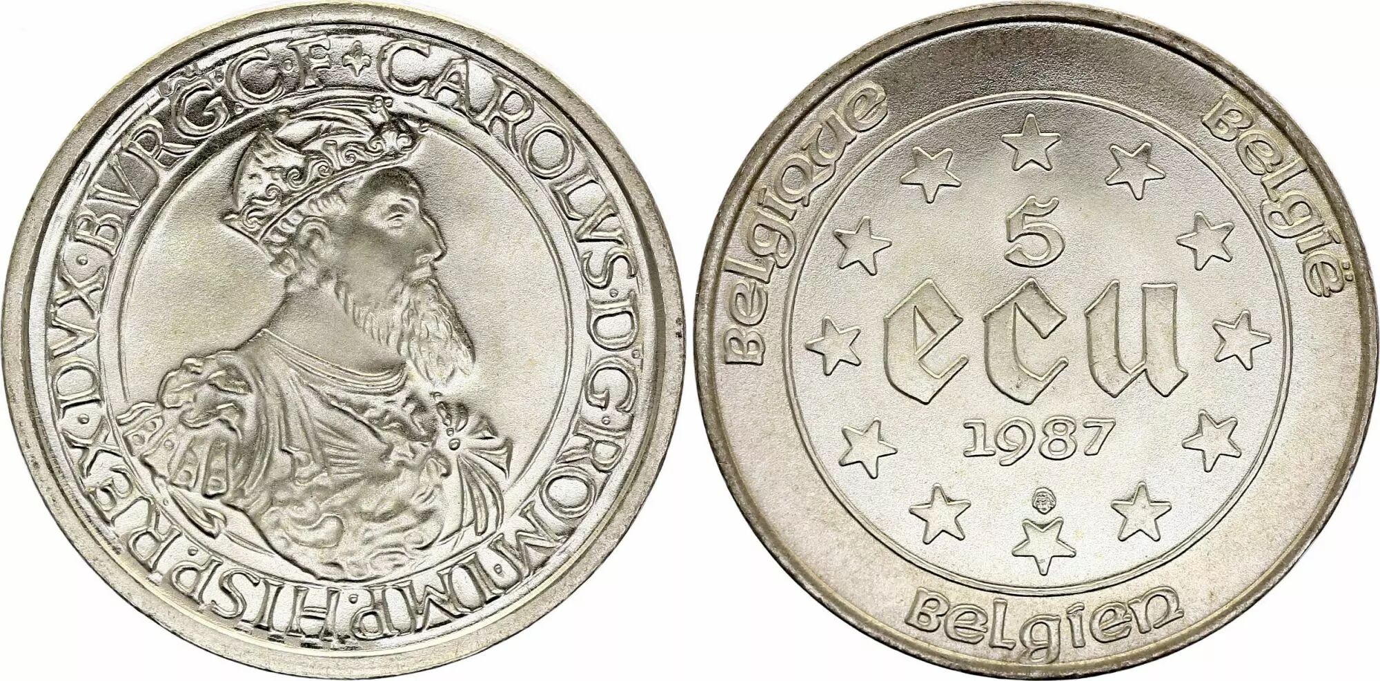 Coin Belgium 5 Ecu - Charle Quint - 1987 - Silver