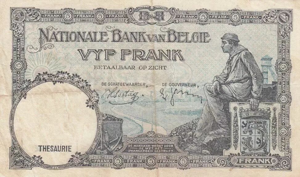 Banknote Belgium 5 Francs - Albert & Elizabeth - 05-05-1938