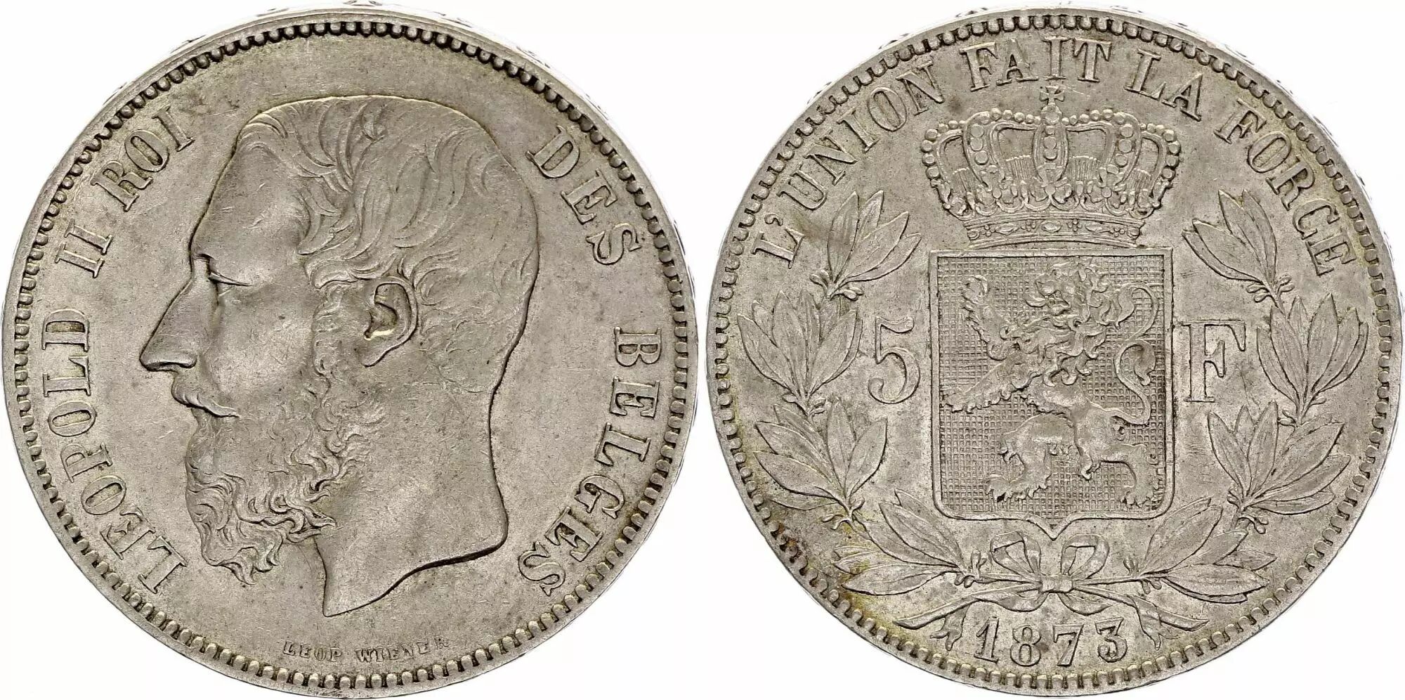 Home > World Coins > European Currencies > Belgium > Belgium 5 Francs, Leopold II - 1873