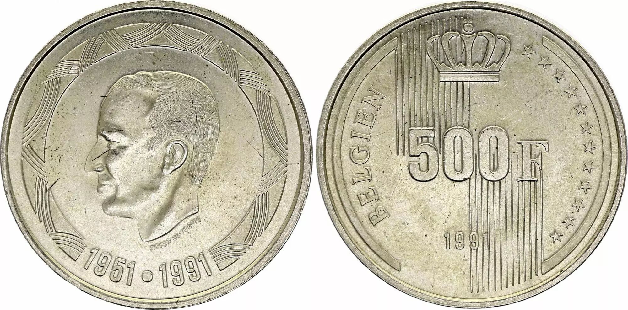 Home > > Belgium 500 Francs, 40e anniversaire du règne de Baudouin - 1991