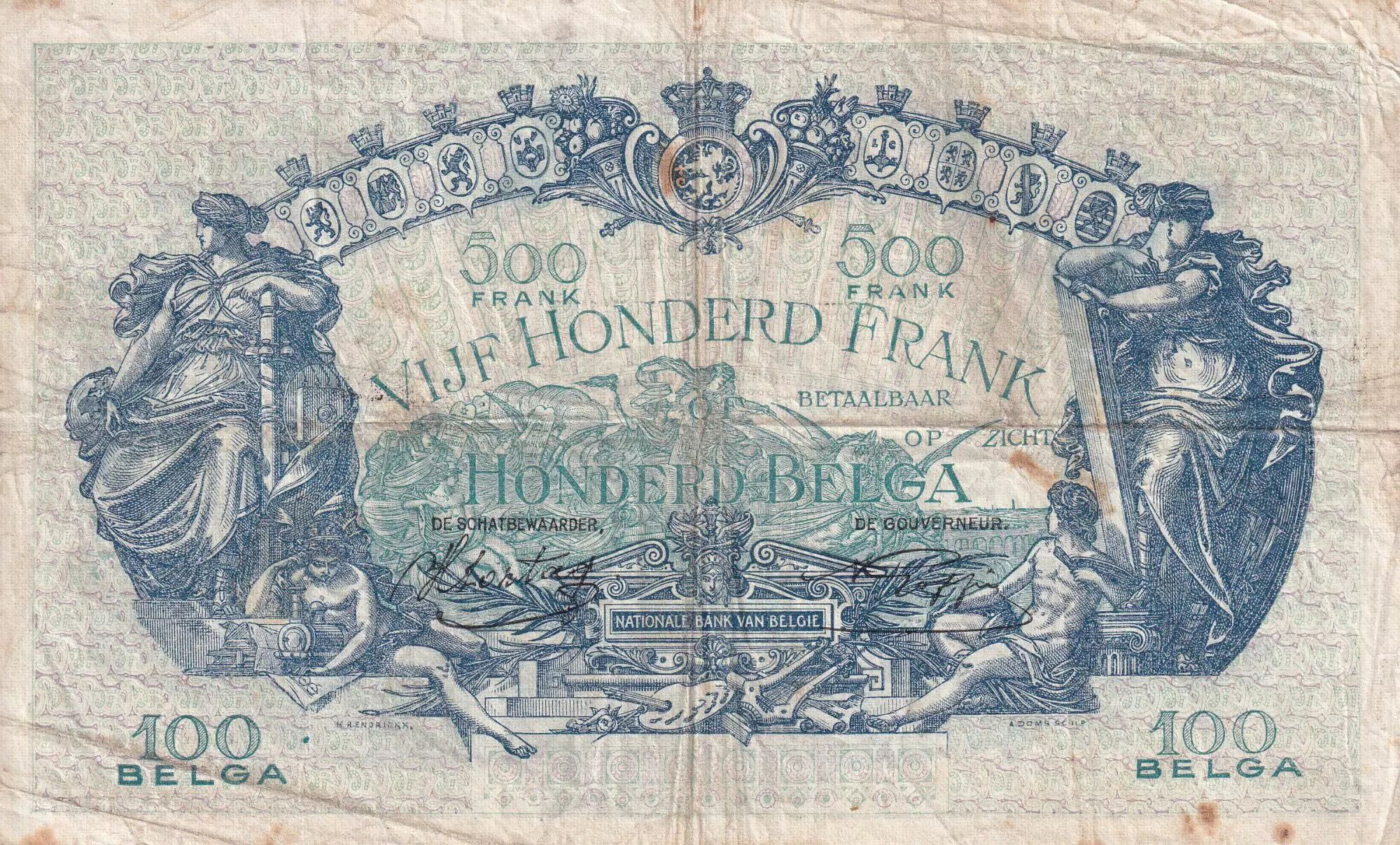 Banknote Belgium 500 Francs - Blue - 07-04-1943 - Letter X - F to VF - P.109
