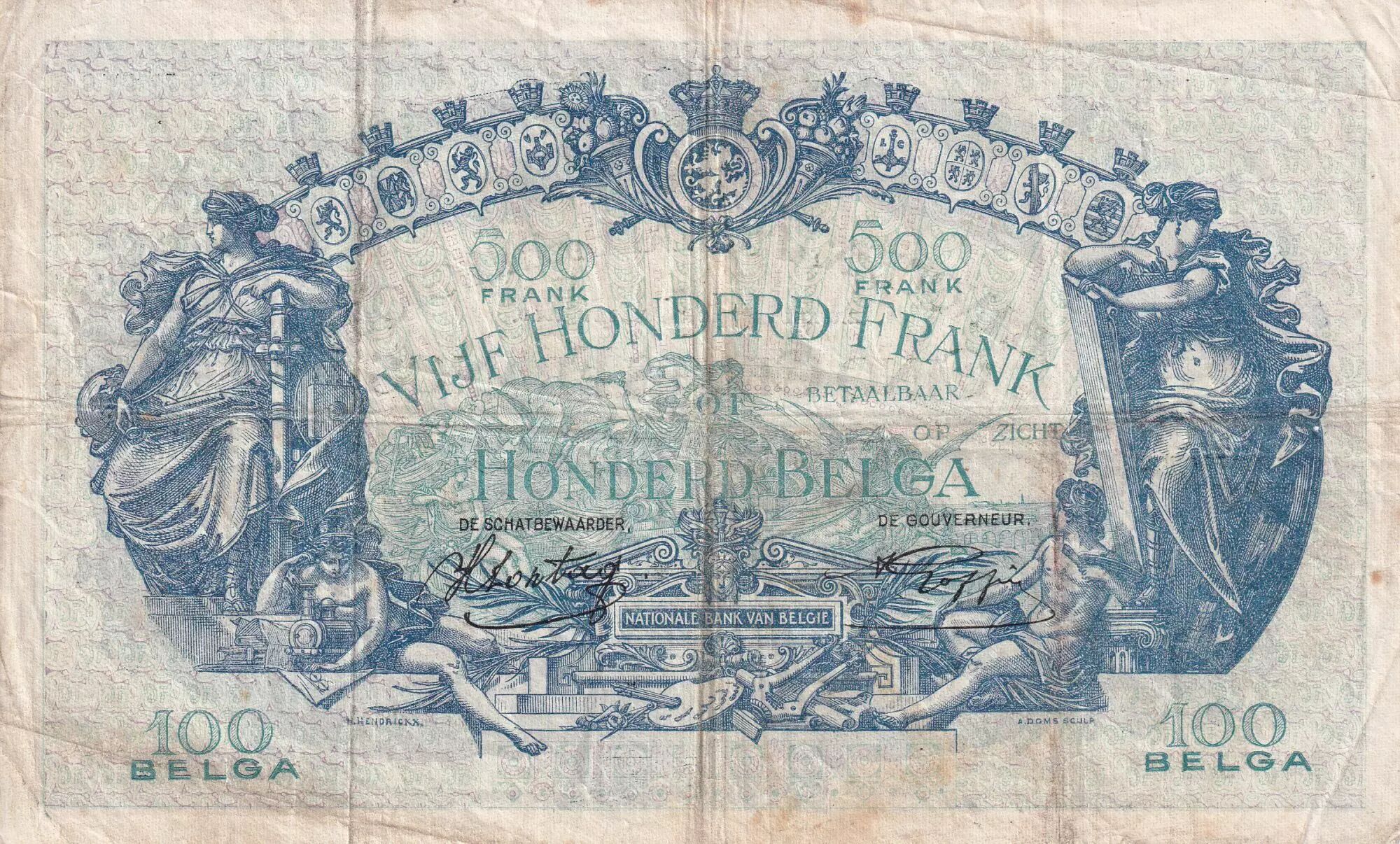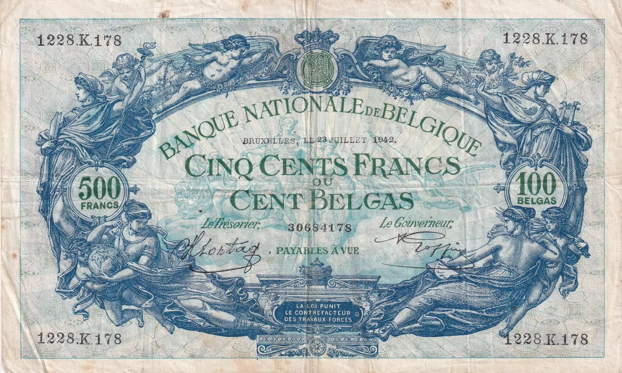 Home > > Belgium 500 Francs - Blue - 23-07-1942 - Letter K - F to VF - P.109